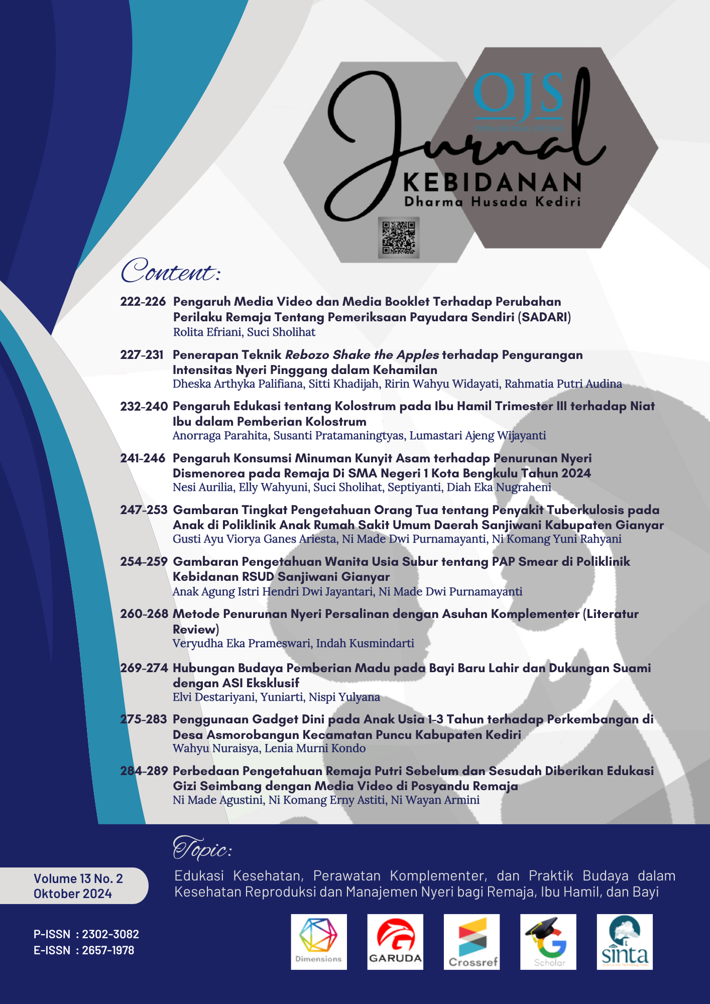 Vol. 13 No. 2 (2024)Topik: Edukasi Kesehatan, Perawatan Komplementer, dan Praktik Budaya dalam Kesehatan Reproduksi dan Manajemen Nyeri bagi Remaja, Ibu Hamil, dan Bayi